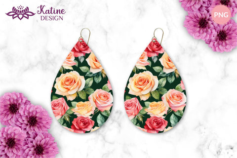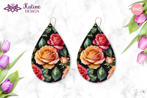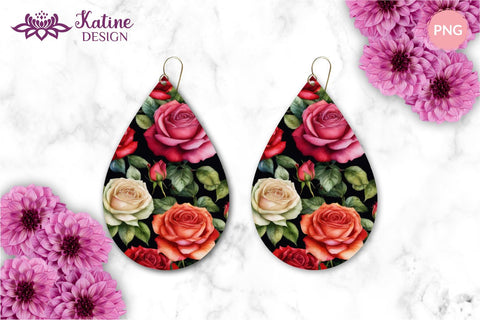 Earring Png, Rose Earrings, Flower Teardrop Earring Designs, Earring Sublimation Designs, Teardrop Earrings Bundle, Earrings Template, Sublimation Earrings, PNG Earrings, Spring Sublimation Earrings