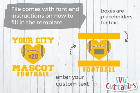 Football template, Fill it in template, COMES WITH FONT, digital cut file made specially for vinyl cutting machines