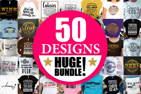 This super cute MEGA Funny SVG Bundle Contains 50! Designs with a little bit of everything! From cute funny to sarcastic designs! This bundle will keep you crafting for hours!