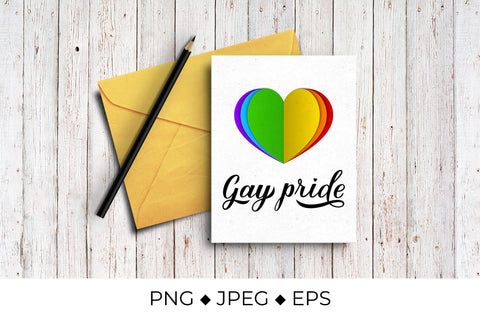 Gay Pride calligraphy hand lettering with rainbow paper cut heart