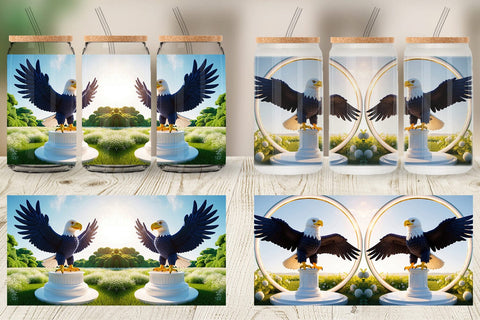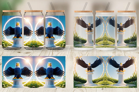 Glass Can Patriotic Bald Eagle