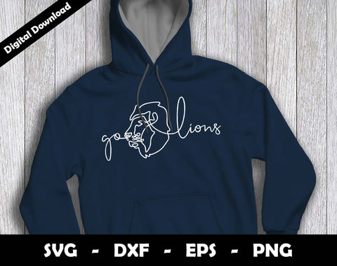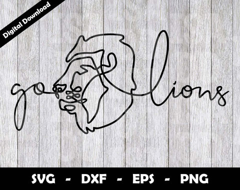 Go Lions SVG Cut File, Lions One line drawing SVG Design, Lions Football Mascot