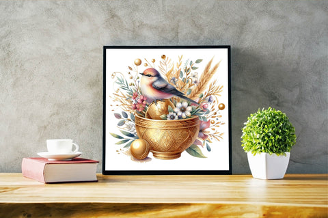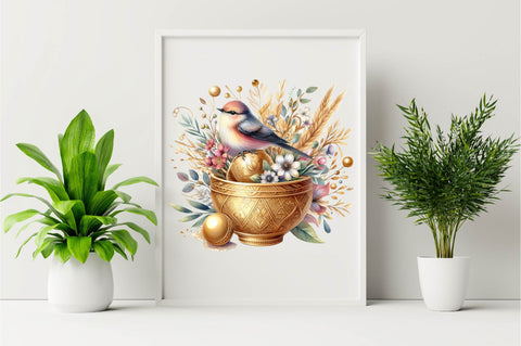 💌 Gold Spring Cozy Home Watercolor Clipart Sublimation Clipart