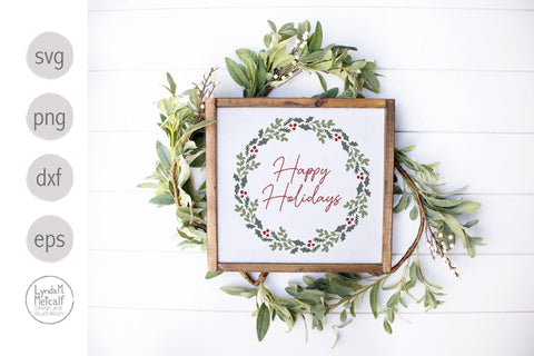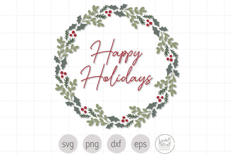 Happy Holidays SVG, Christmas Wreath svg, Happy Holidays Wreath SVG
