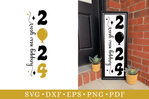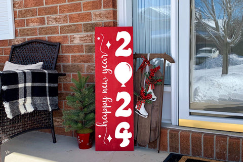 Create a warm and inviting atmosphere to your home for celebrating New Year with this Happy New Year 2024 Porch Sign SVG design. Ideal for making porch / vertical signs, welcome signs, front door signs, outdoor decor, and much more.
