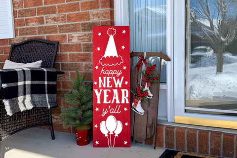 Add a touch of celebration to your outdoor space celebrating New Year using this captivating Happy New Year Y’all Porch Sign SVG design. The design is ideal for creating porch / vertical signs, welcome signs, front door signs, outdoor decor, and much more.