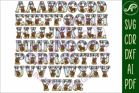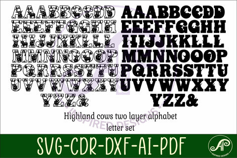 Highland cow alphabet letter set. 2 layer 56 letters.