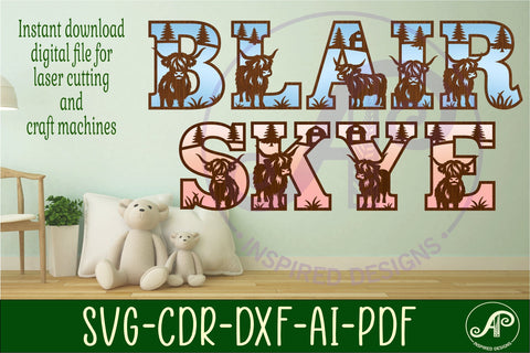 This digital download features a zip folder including 56 Highland cow theme letters. These letters work well as two layers (backing and detailed top) or just as a single layer.