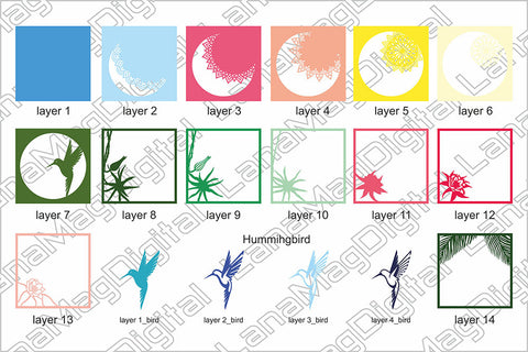 14 Layered design with hummingbird, flower and sun mandala is made for CriCut machines, CNC laser cutter, Glowforge. You can use it for home decor, wall decor or as a gift for your friends and loved ones. Great gift idea for Mother's day, birthday or any other occasion.