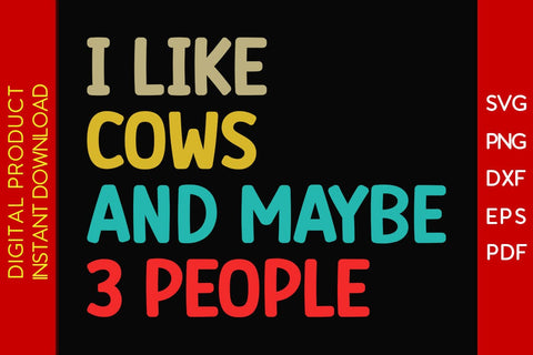 I Like Cows And Maybe 3 People SVG PNG PDF Cut File