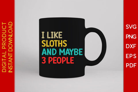 I Like Sloths And Maybe 3 People SVG PNG PDF Cut File