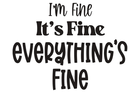 Make yourself a sarcastic shirt with this I'm Fine, It's Fine, Everything's Fine SVG. The file types included are great for cut file projects, vinyl, HTV, printing, sublimation, and other projects.