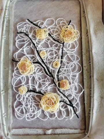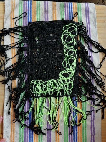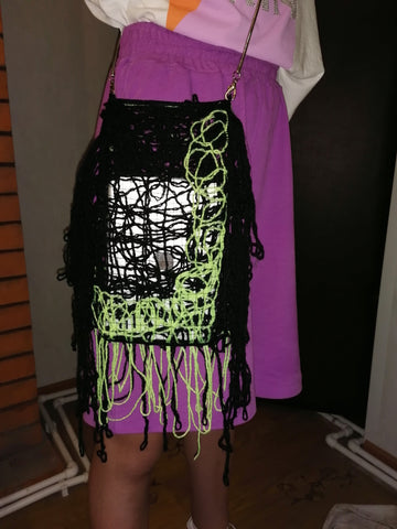 You have remnants of yarn and knitting threads. Create your own pattern in the crazy wool technique. Show your imagination.