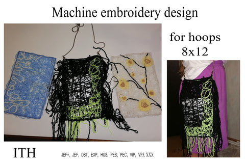 In the hoop bag embroidery design Crazy wool for hoop 8x12