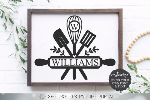 Kitchen Utensils Monogram / Last Name SVG | Farmhouse Kitchen Sign SVG | Tea Towel SVG | dxf and more! | Printable