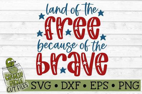Land of the Free Because of the Brave Patriotic / 4th of July svg cutting file. This cute patriotic design will be great for 4th of July or even to just show everyday American spirit. Use it with your Cricut or Silhouette Cameo to make shirts, tote bags, vinyl decals and more. Includes a 12 inch, 3600 x 3600px PNG file that can be printed and sized down if needed.