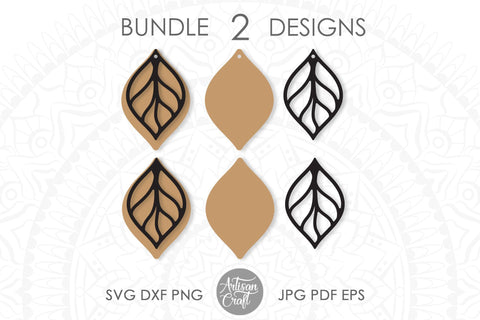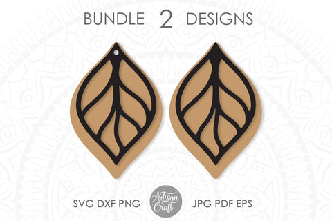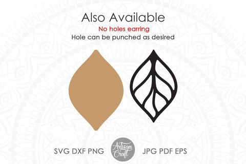 Leaf earring SVG cut file for making DIY gifts for people who love nature. The design of the jewelry consists of a leaf shape cut out and another leaf shape with veins pattern.