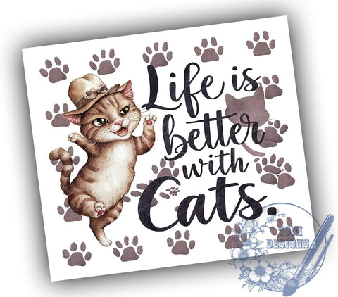 Life is Better with Cats 20oz Skinny Tumbler, Cat Lover Tumbler Png, Straight & Tapered Tumbler Wrap, Instant Digital Download