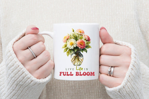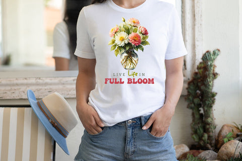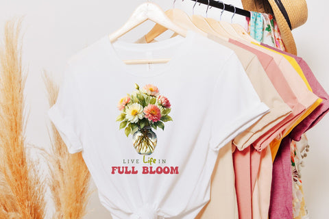 Are you searching to add a natural and inspiring touch to your creative projects? Look no further than our Flower Quote sublimation design. It features vibrant wildflower illustrations with an uplifting quote “Live Life in Full Bloom” to inspire and motivate. This Flower Quote Sublimation design is perfect for creating a wide range of products such as t-shirts, mugs, tote bags, pillows, and a lot more!