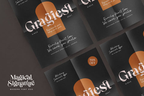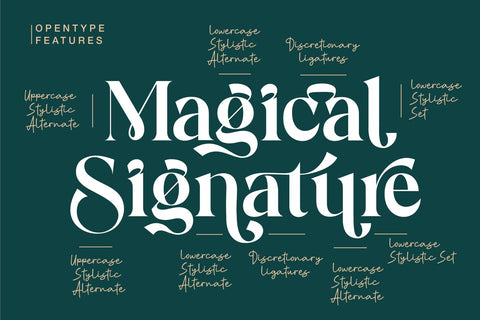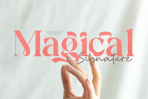 Magical Signature are Font duo  that includes a serif typeface  and signature script. Display Serif inspired by famous logo, This typeface has been made carefully to make sure its premium quality and luxury feel. suitable for your design project business, like logo branding, wedding invitation, typhography wedding, quotes text, magazine, or anything do you want.