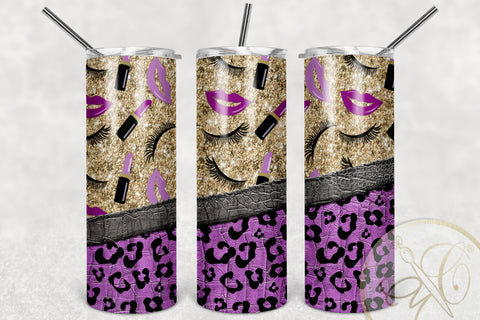 Girly 20oz Skinny Tumbler Sublimation/ Makeup/ Leopard and Leather/ Glitter/ Purple