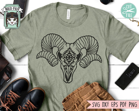 Ram Skull Medallion SVG Cut File