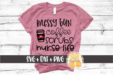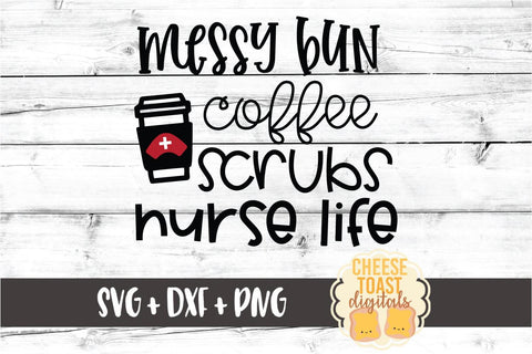 Messy Bun Coffee Scrubs Nurse Life – Funny Nurse SVG PNG DXF Cut Files