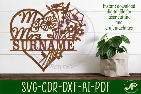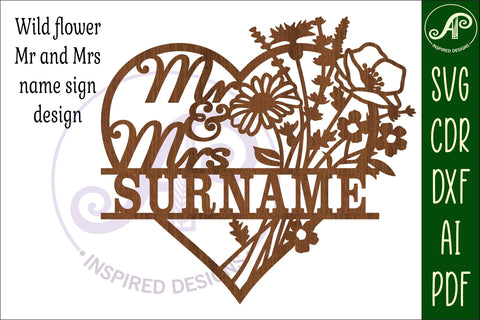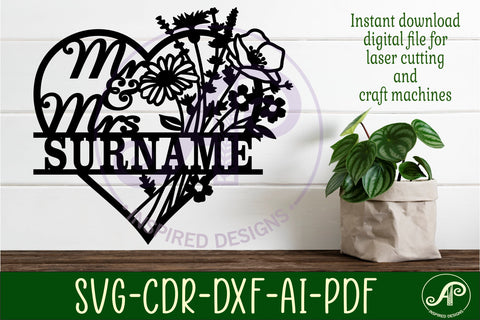 Mr and Mrs wild flower heart Wedding personalized sign svg