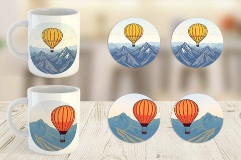 Mug Wrap Mountain Hot Air Balloon