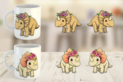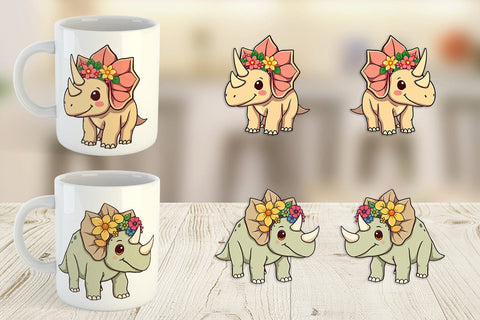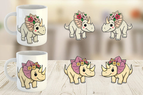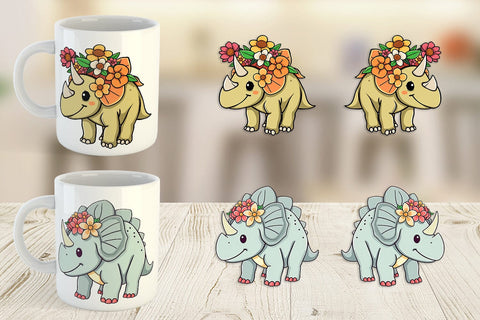 Mug Wrap Triceratops with Flowers
