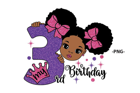 My 3rd Birthday Girl SVG PNG JPG PDF EPS DXF AI Digital Afro Girl Clipart with Glitter Bows Crown for Cricut Sublimation Designs