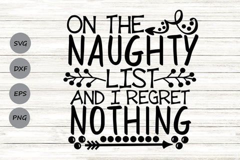On The Naughty List And I Regret Nothing| Christmas Santa SVG Cutting Files.