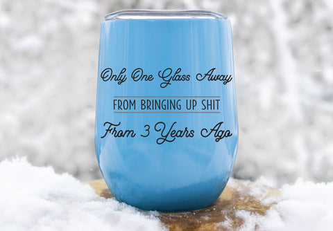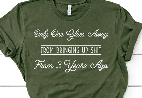 Only One Glass Away From Bringing Up Shit From 3 Years Ago....this commercial svg design speaks for itself. Throw this adult drinking svg design on wine glasses for your wedding party, mugs for your best friend, a shirt for your birthday party, a funny beer opener for the bitch barn, and more! This adult svg design works with Cricut, Silhouette, ScanNCut, and other die cutting machines that read these Cut File Formats: SVG | PNG | DXF