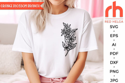Orange Blossom Branch SVG, Florida State Flower Cut File, Floral Shirt Design DXF, Orange Outline, Botanical Theme