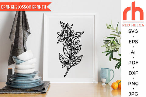 Orange Blossom Branch SVG, Florida State Flower Cut File, Floral Shirt Design DXF, Orange Outline, Botanical Theme - Silhouette cut file, Cricut cut file - Png, Jpg, Dxf, Eps