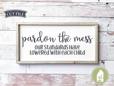 Pardon the Mess Our Standards Have Lowered With Each Child SVG | Family SVG | Farmhouse Sign Design