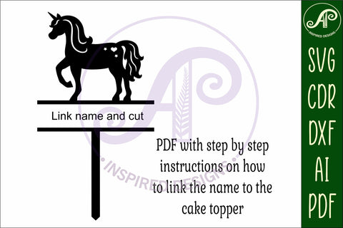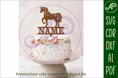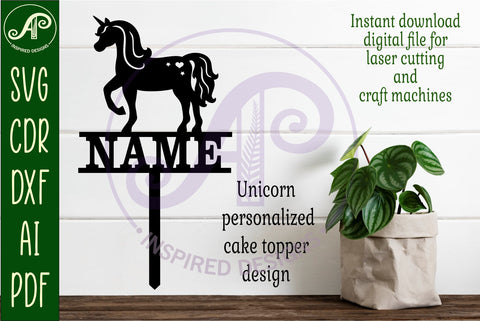 Personalized Unicorn design 3 cake topper SVG laser cut