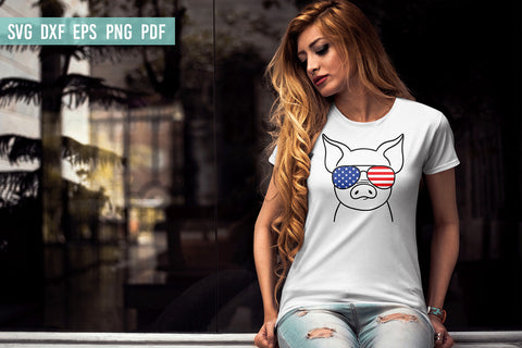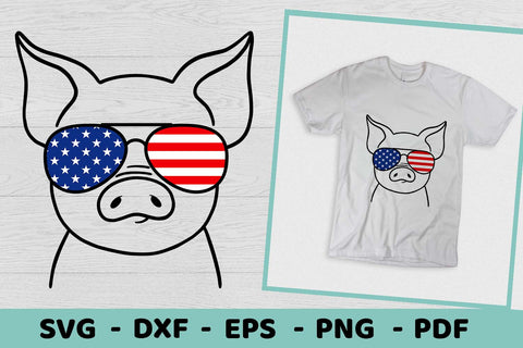 Pig SVG | Pig with glasses USA print | 4th of July SVG