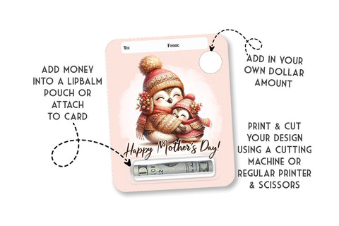 Celebrate your mom with these adorable and unique Mother's Day money holder card designs! Each set includes 6 different cute animal themed illustrations, perfect for adding a special touch to your monetary gift. These print then cut designs are sized at 4x5 inches and come in a high-quality 300 DPI PNG format, suitable for most printers. Simply download, print, and personalize your card with a loving message. It's an instant download, so you can create a thoughtful and charming gift for your mom right at home!