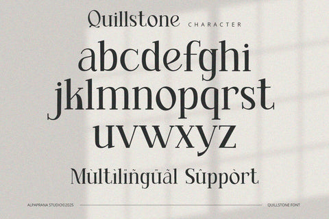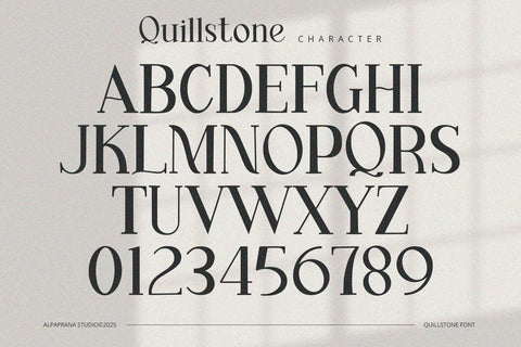 Quillstone is modern serif font with elegant and modern feels. It will be perfectly used for Branding, Logo Design, Lettering, Logotype, Clothing, Poster, magazine, packaging, posters, shopping bags, t-shirts, book covers, photography, special events and other design project.