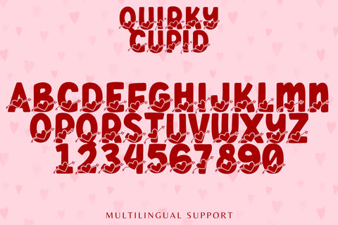 Quirky Cupid is a cheerful and whimsical font designed to celebrate love in the most charming way. With its heart-infused strokes and quirky, hand-drawn style, this font is perfect for Valentine's Day cards, wedding invitations, love notes, romantic crafts, and playful branding. It adds a touch of fun and affection to any heartfelt project.