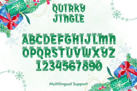 Quirky Jingle is a joyful and spirited display font inspired by the magic of the holidays. With its bold, bouncy letters and cheerful character, this font is perfect for Christmas cards, festive merchandise, seasonal invitations, and holiday-themed crafts. Its hand-drawn charm and whimsical style add a lighthearted, magical vibe to every project it touches.