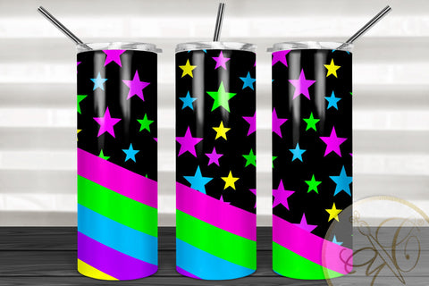 Retro 20oz Skinny Tumbler Sublimation/ 80's, 90's/ Black BG/ Stars