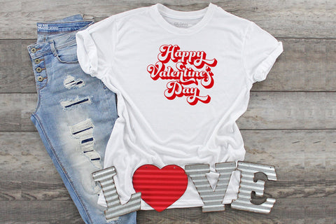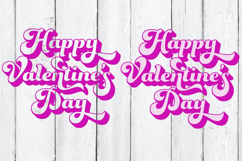 This fun retro Happy Valentine's Day SVG design is perfect for making shirts, mugs, signs, card, and stickers! You can use the design two different ways, either with the inner lettering cut out to give the outline effect, or as a two color design with the lettering and the outline. There is also a solid background layer to give you the option of layering the inner lettering on top instead of fitting the two layers together. The file types included are great for cut file projects, HTV, printing, t-shirt designs, scrapbooking, stickers, and much more!
