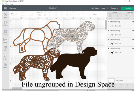 This intricate layered St. Bernard dog mandala was created for Cricut or other cutting machines. This SVG has 4 individual layers.