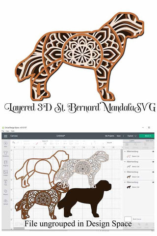 Saint Bernard Mandala 3D Layered Dog SVG file, 4 layers