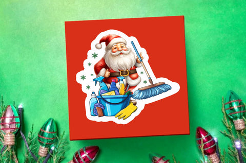 Santa cleaning man Sticker Design