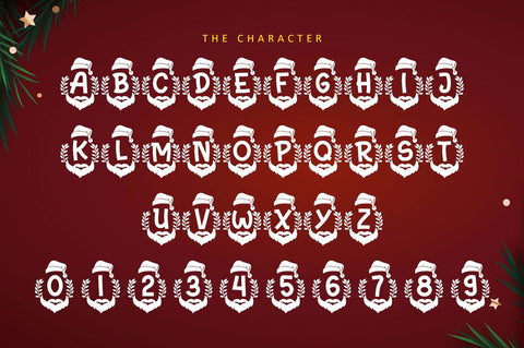 Santa Monogram is a monogram font mix with a moustache, floral and hat santa. It is ideal for Christmas Holiday-themed greeting cards and for any crafting gift project.