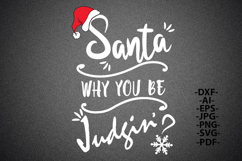 Santa why you be judgin Svg | Christmas Shirt SVG | Funny Holiday SVG | Christmas Clipart | Dxf Cricut | Instant Download, Cut File for Silhouette, Black and White Version Svg