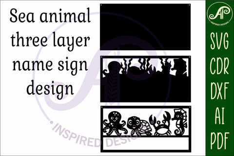 Sea animal scene name sign SVG 3 layer laser cut